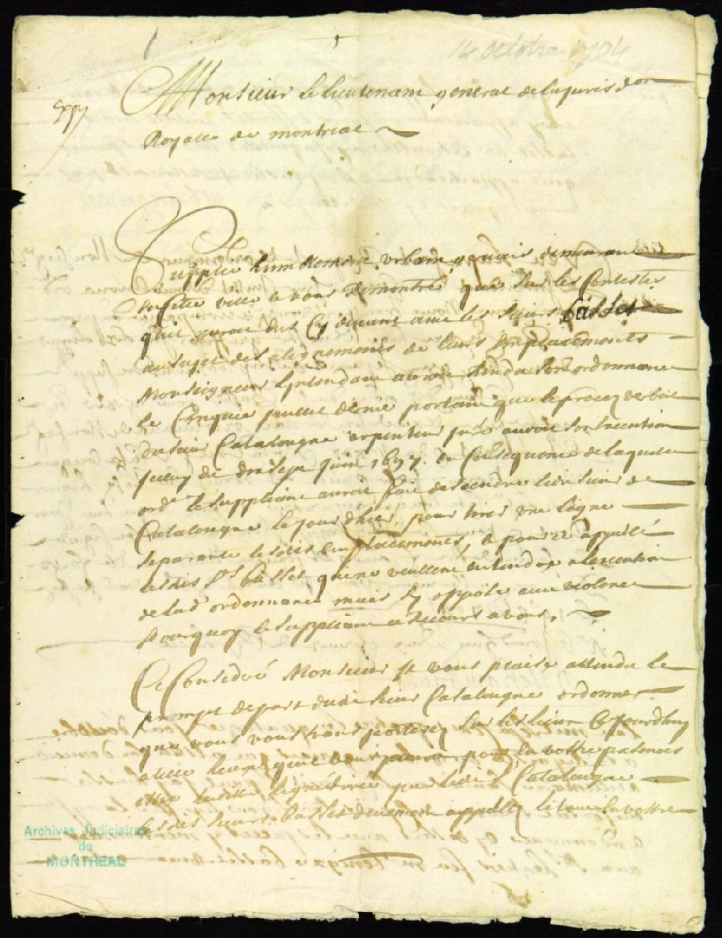 - Ce dossier de matière civile est composé des pièces suivantes : la requête d'Urbain Gervaise, de Ville-Marie, pour l'exécution de l'ordonnance de l'Intendant, à laquelle s'opposent prétendument les héritiers Basset ; l'assignation de l'huissier ; le procès-verbal d'audience de la Juridiction royale de Montréal et le déplacement des membres de la Cour sur la ligne séparant les emplacements ; et le procès-verbal d'arpentage de Gédéon de Catalogne, arpenteur juré
