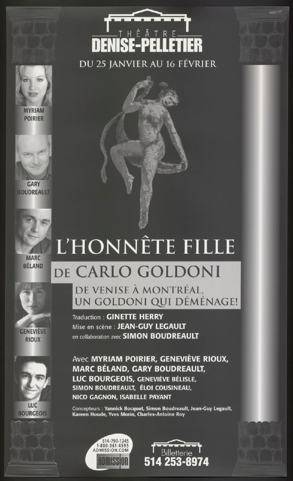 L'honnête fille, de Carlo Goldoni ... traduction Ginette Herry, mise en scène Jean-Guy Legault
