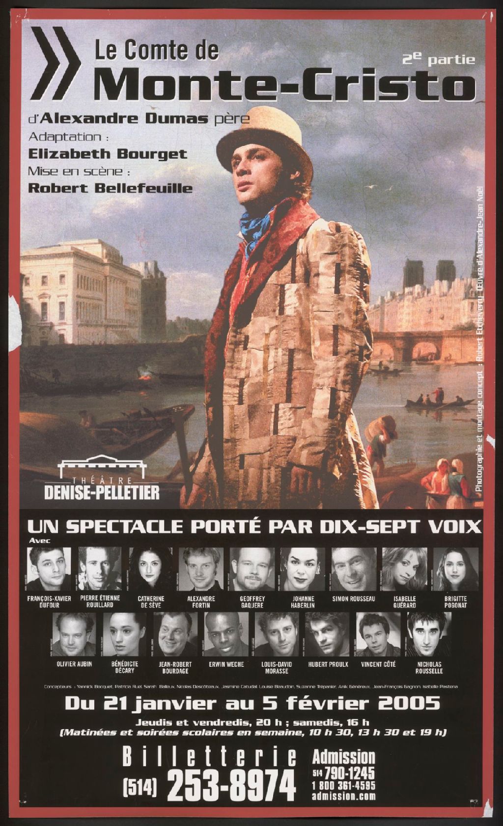 Le comte de Monte-Cristo, 2e partie, d'Alexandre Dumas père, adaptation Elizabeth Bourget, mise en scène Robert Bellefeuille un spectacle porté par dix-sept voix