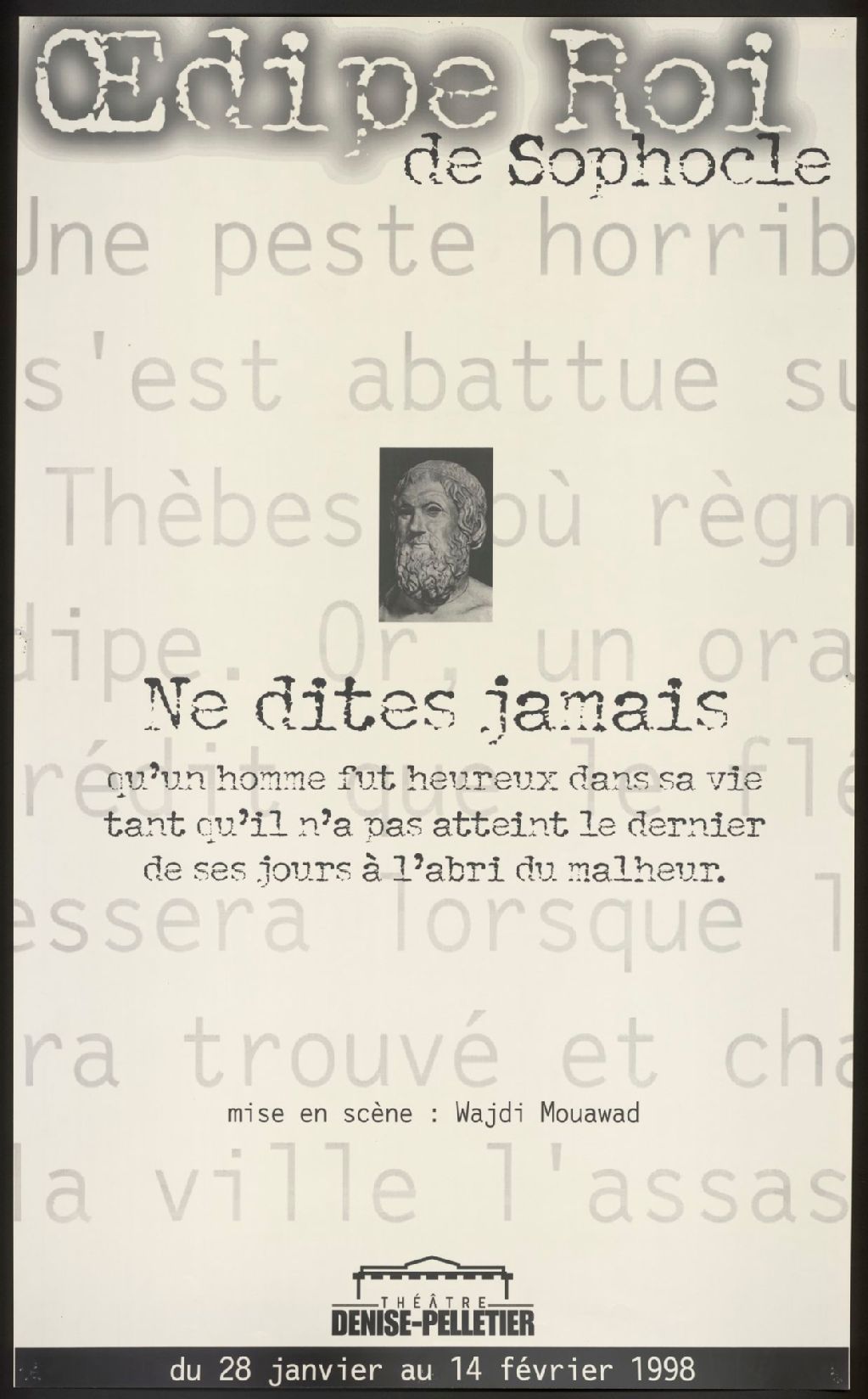 Oedipe roi, de Sophocle, ne dites jamais ... mise en scène, Wajdi Mouawad
