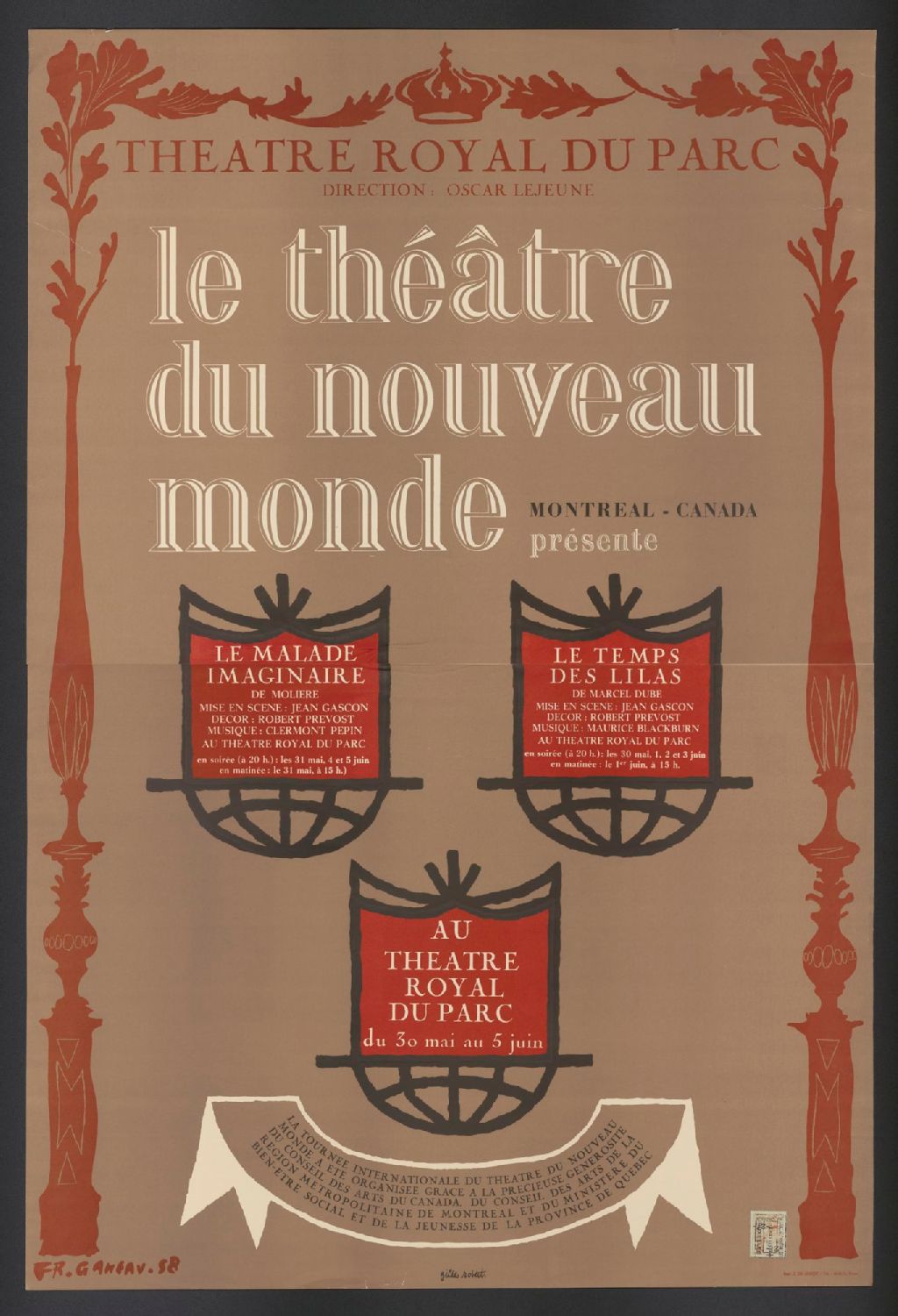 Le Théâtre du Nouveau Monde, Montréal - Canada, présente Le malade imaginaire, de Molière ... Le temps des lilas, de Marcel Dubé ... /