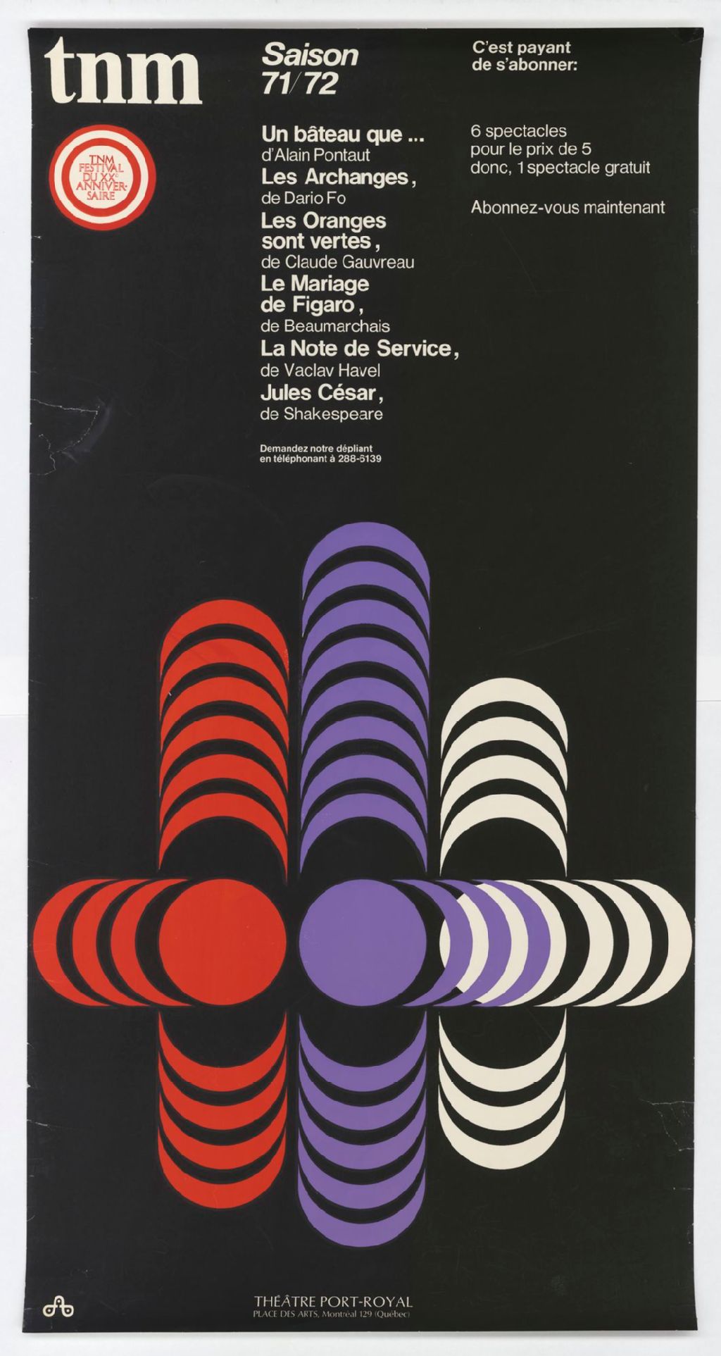 Saison 71/72 : Un bateau que... d'Alain Pontaut - Les archanges, de Dario Fo - Les oranges sont vertes, de Claude Gauvreau - Le mariage de Figaro, de Beaumarchais - La note de service, de Vaclav Havel - Jules César, de Shakespeare