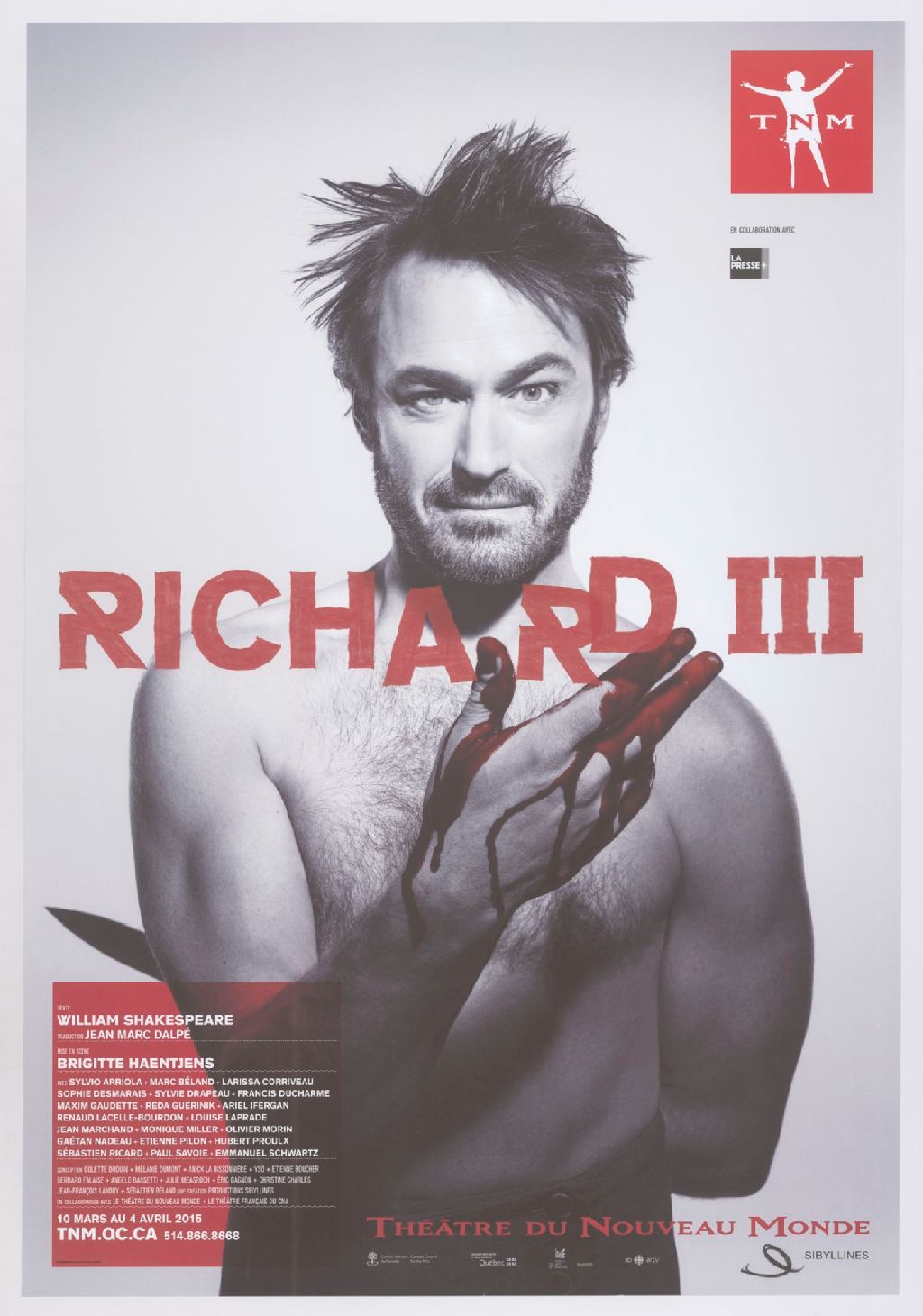 Richard III : texte William Shakespeare, traduction Jean Marc Dalpé, mise en scène Brigitte Haentjens ... 10 mars au 4 avril 2015 ... /