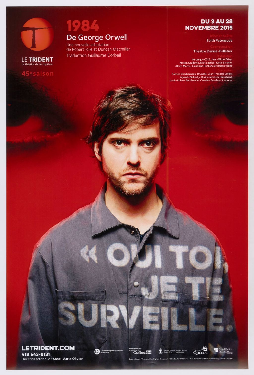 1984, de George Orwell, une nouvelle adaptation de Robert Icke et Duncan Macmillan, traduction Guillaume Corbeil, du 3 au 28 novembre 2015 : mise en scène Édith Patenaude, coproduction Théâtre Denise-Pelletier ... /