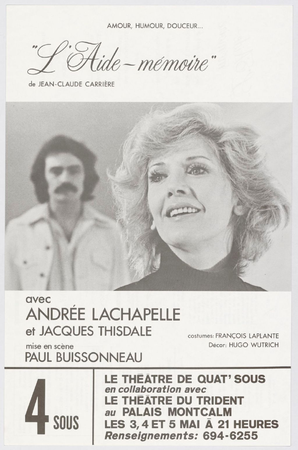 L'aide-mémoire, de Jean-Claude Carrière, amour, humour, douceur-- avec Andrée Lachapelle et Jacques Thisdale, mise en scène Paul Buissonneau