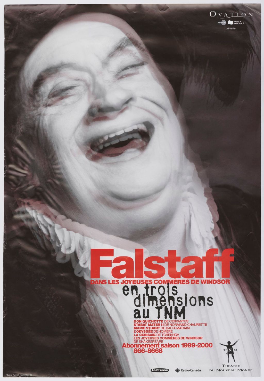Ovation présente Falstaff dans Les joyeuses commères de Windsor, en trois dimensions au TNM : Don Quichotte, de Cervantes, Stabat Mater II, de Normand Chaurette, Marie Stuart, de Dacia Maraini, L'odyssée, de Homère, La cerisaie de Tchekhov, Les joyeuses commères de Windsor, de Shakespeare : abonnement saison 1999-2000 ... /