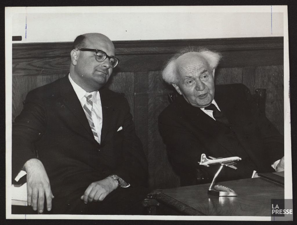 - Le dossier concerne David Ben Gurion en visite à Montréal. Des documents le montrent accompagné notamment de Jean Drapeau