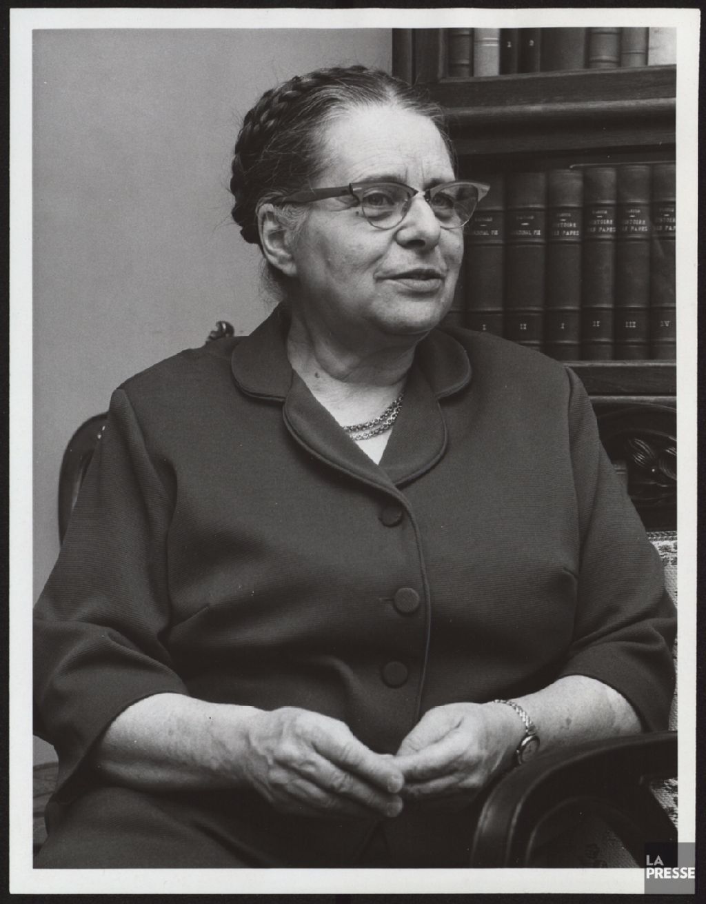 Le document illustre Anne Bourassa, fille d'Henri Bourassa, invitée à la Société historique de Montréal