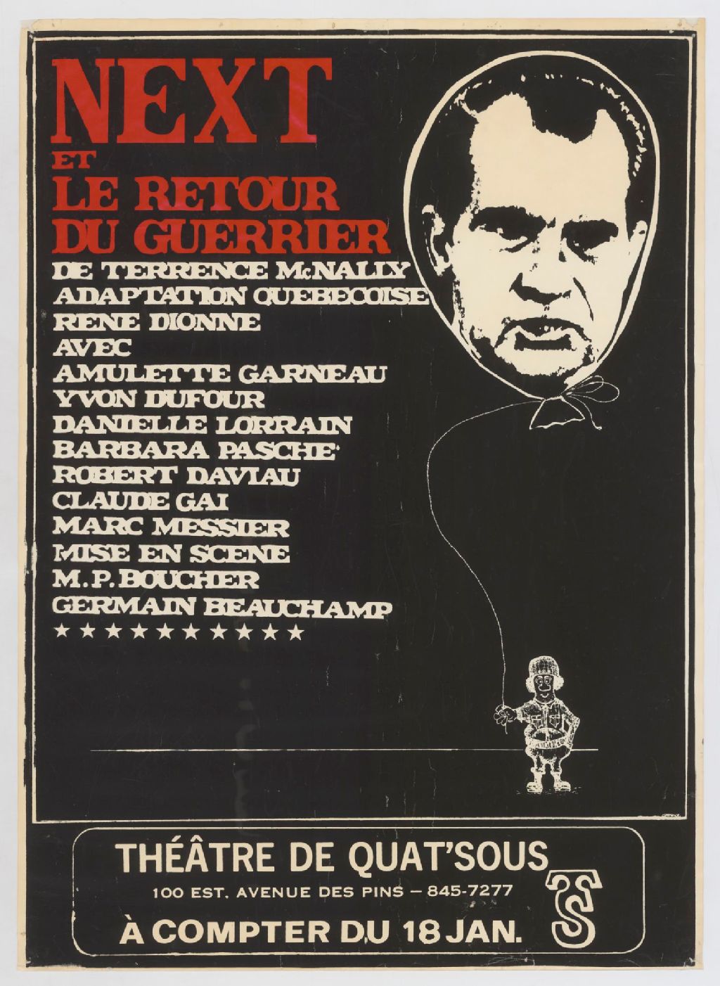 Next et Le retour du guerrier, de Terrence McNally : adaptation québécoise René Dionne, avec Amulette Garneau, Yvon Dufour, Danielle Lorrain ...