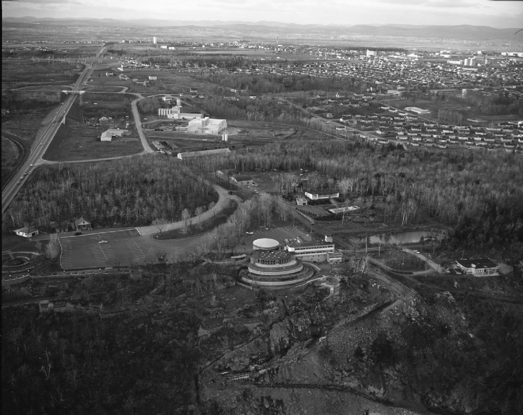 Vue aérienne de l'aquarium de Québec, 1961, Archives nationales à Québec, Fonds Ministère de la Culture et des Communications, (03Q,E6,S7,SS1,D13,P4436-61H), Neuville Bazin.