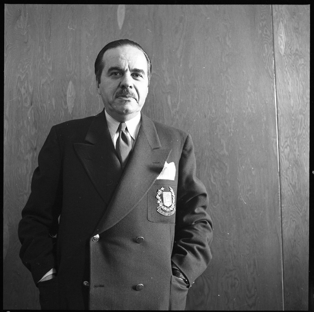 Paul Gouin dans son bureau, 1950, Archives nationales à Québec, Fonds Lida Moser, (03Q,P728,S1,D2,P11-3), Lida Moser.