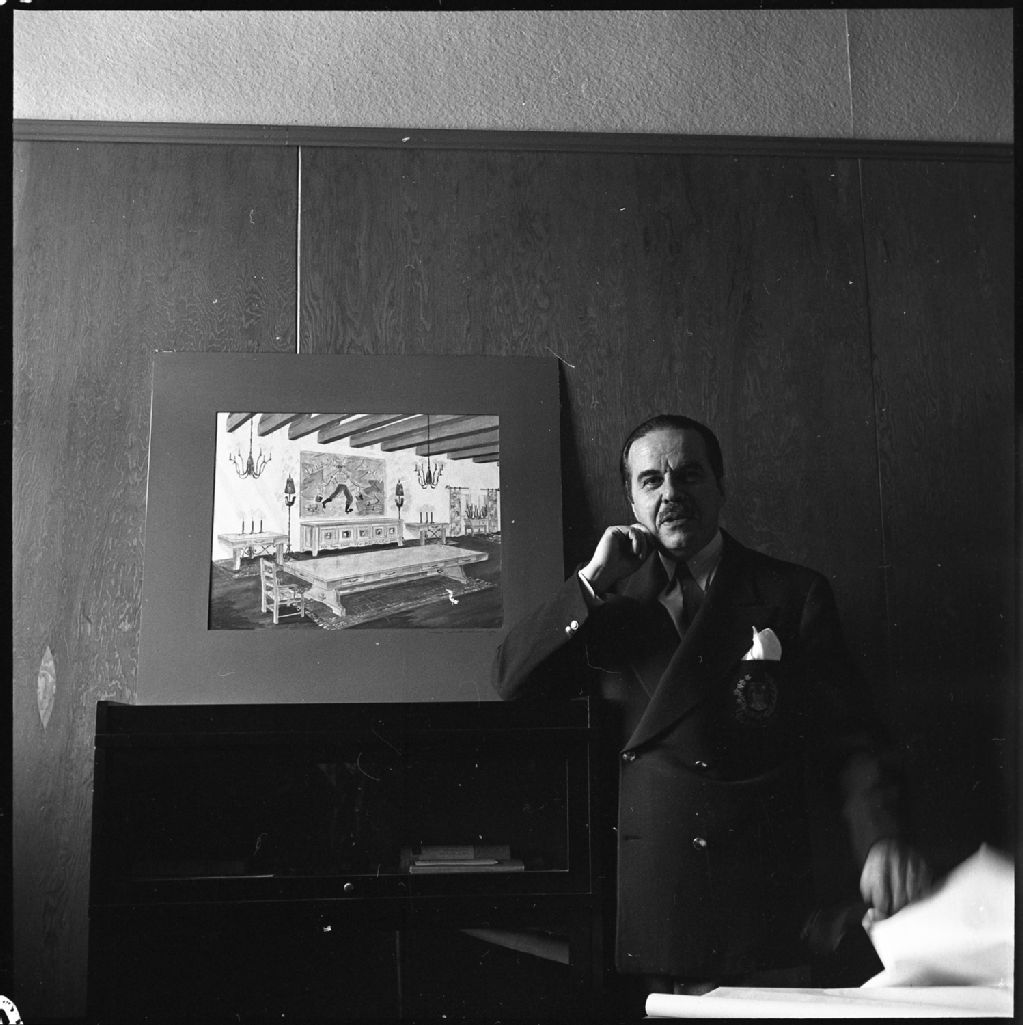 Paul Gouin dans son bureau, 1950, Archives nationales à Québec, Fonds Lida Moser, (03Q,P728,S1,D2,P11-9), Lida Moser.