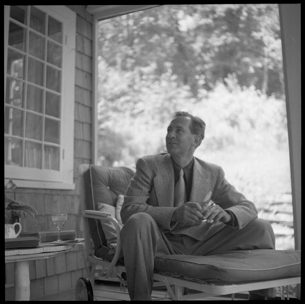 L'écrivain Hugh MacLennan à sa résidence, 1950, Archives nationales à Québec, Fonds Lida Moser, (03Q,P728,S1,D2,P2-3), Lida Moser.