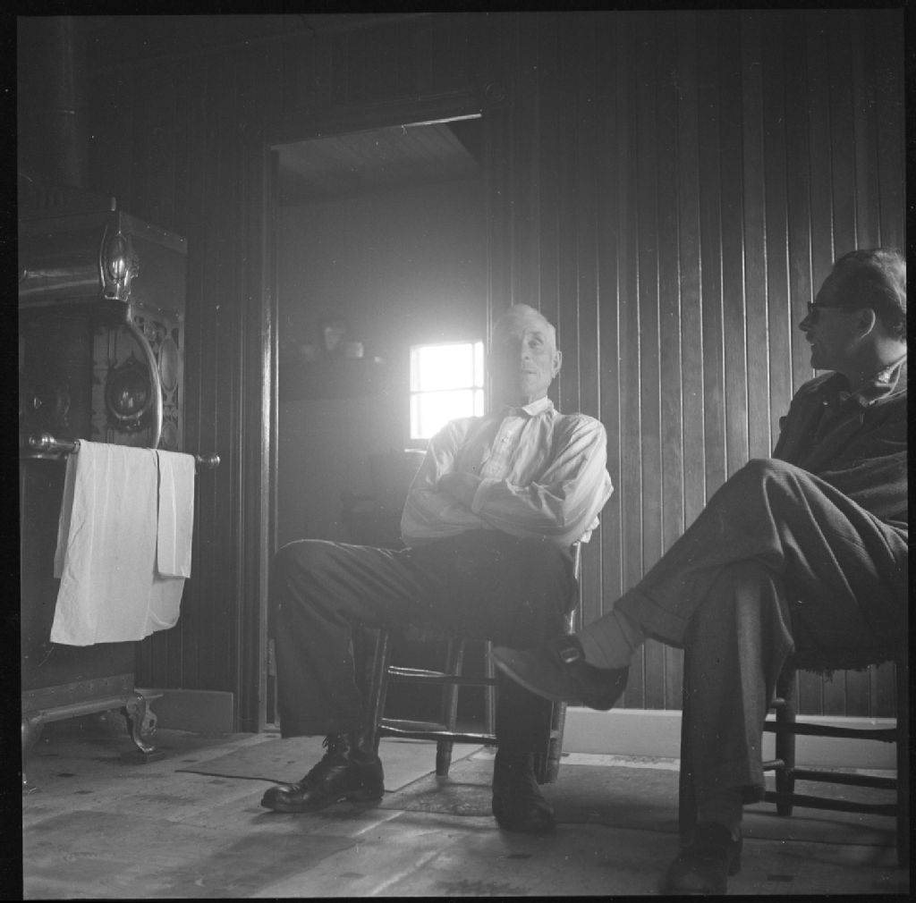 Jean Palardy et Alexandre Brossard chez ce dernier, La Prairie, 1950, Archives nationales à Québec, Fonds Lida Moser, (03Q,P728,S1,D2,P22-20), Lida Moser.