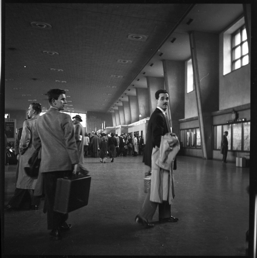 Porteurs de bagages à la gare centrale de Montréal, 1950, Archives nationales à Québec, Fonds Lida Moser, (03Q,P728,S1,D2,P3-99), Lida Moser.