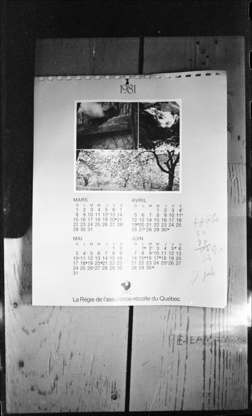 Logis, calendrier et notes du propriétaire, 1981, Archives nationales à Québec, Fonds Guy Giguère, (03Q,P640,D25,P1), Guy Guiguère.