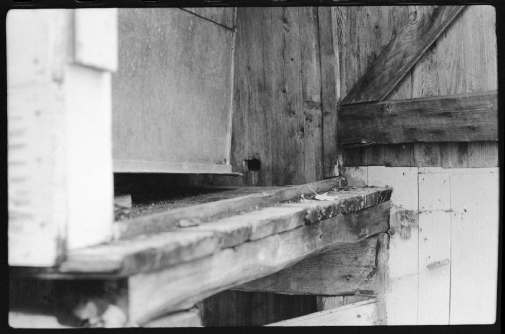 Appentis du réservoir - Petit trou dans le mur de la cabane pour passer le tuyau d'alimentation en eau, 1979, Archives nationales à Québec, Fonds Guy Giguère, (03Q,P640,D3,P6), Guy Giguère.