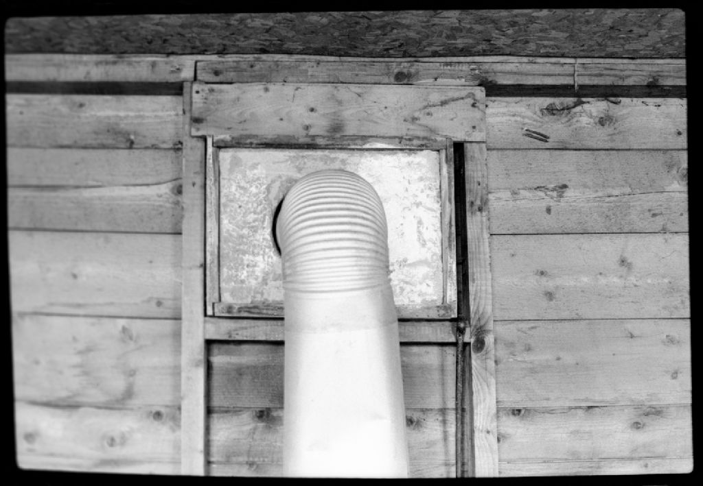 Salle nord-est- Bloc de ciment pour le tuyau du poêle, 18 septembre 1979, Archives nationales à Québec, Fonds Guy Giguère, (03Q,P640,D4,P15), Guy Giguère.