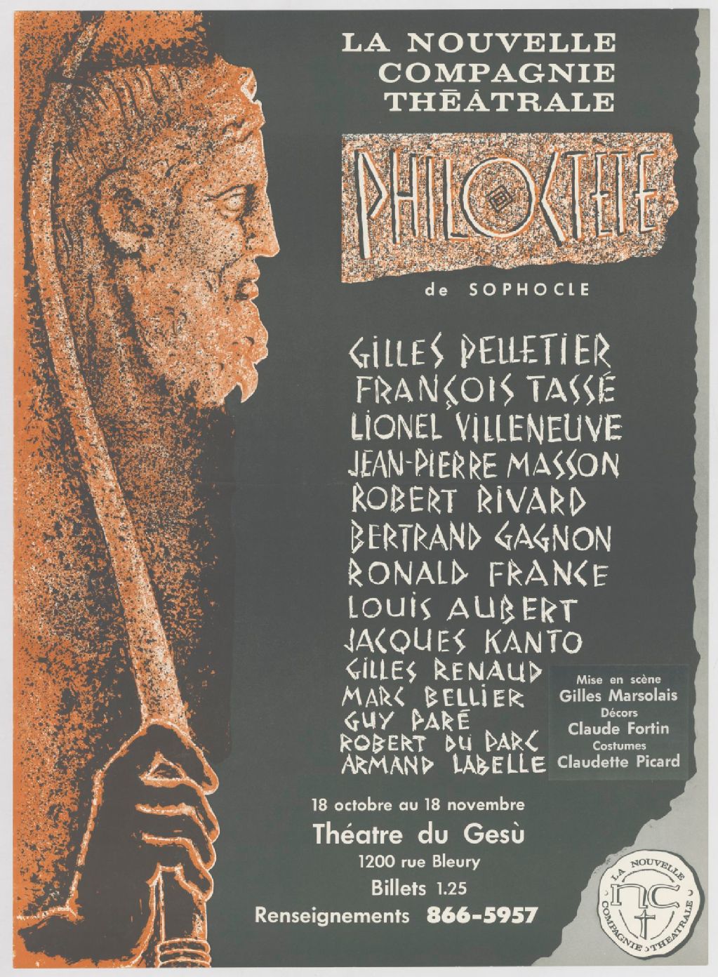Philoctète, de Sophocle, mise en scène Gilles Marsolais ... Gilles Pelletier, François Tassé, Lionel Villeneuve ...