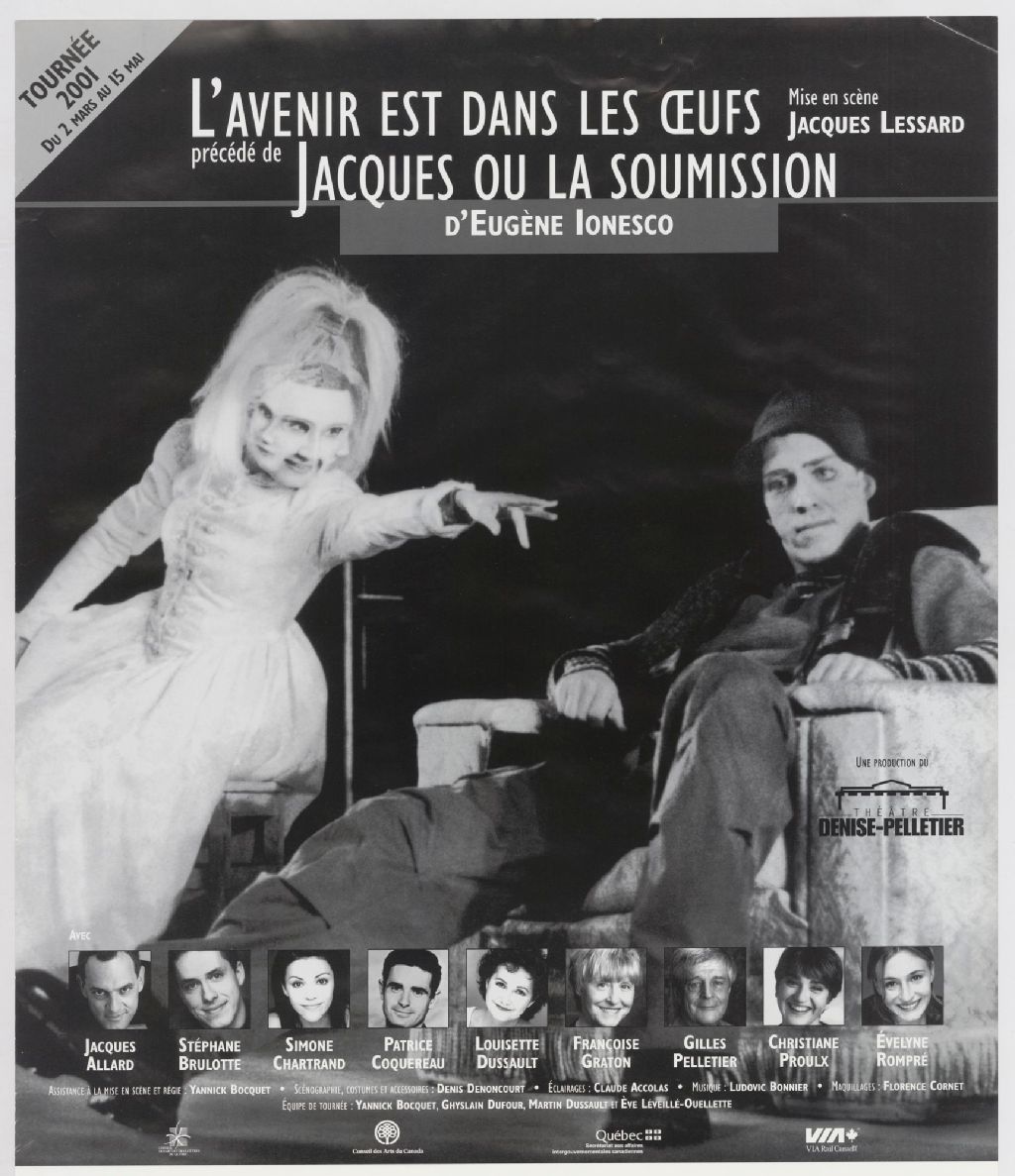 L'avenir est dans les oeufs, précédé de, Jacques, ou, La soumission, d'Eugène Ionesco, mise en scène Jacques Lessard Tournée 2001: Jacques Allard, Stéphane Brulotte, Simone Chartrand ...