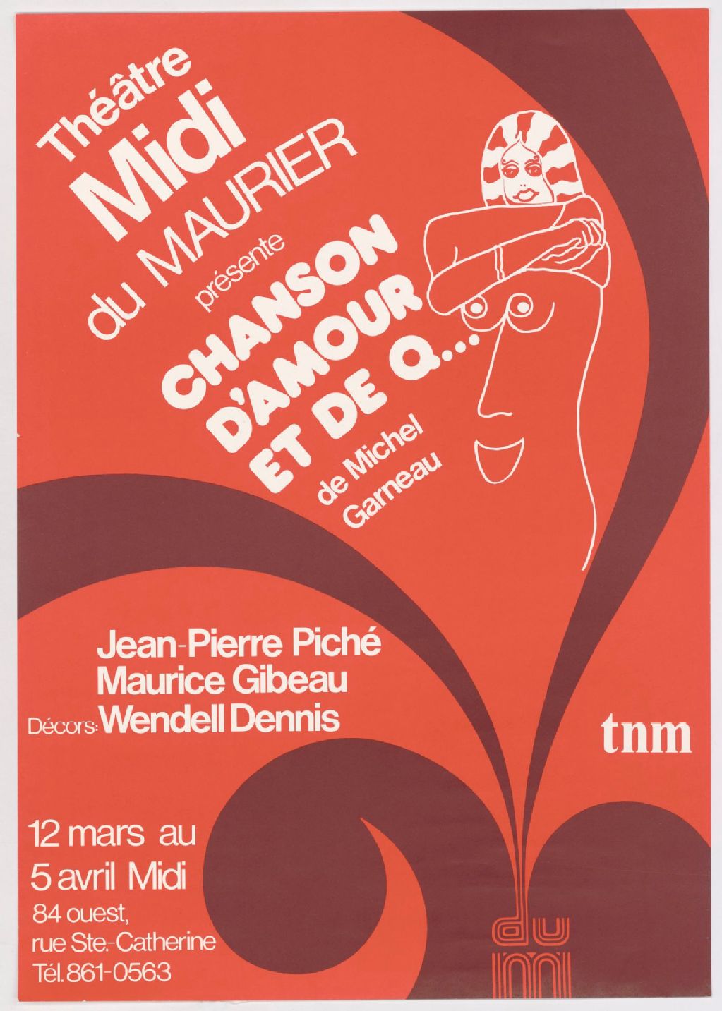 Théâtre midi du Maurier présente Chanson d'amour et de Q--, de Michel Garneau Jean-Pierre Piché, Maurice Gibeau ...