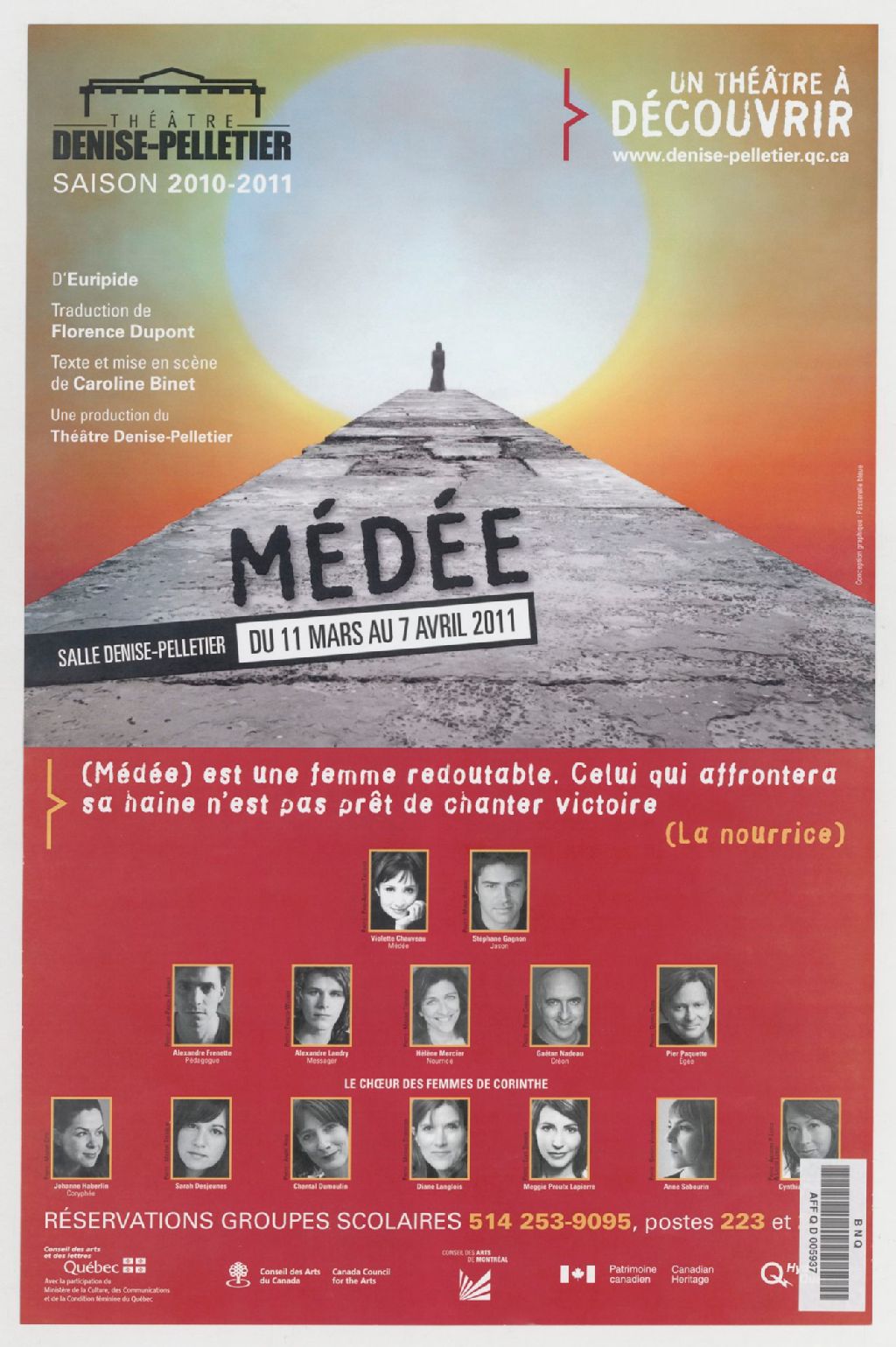 Médée, salle Denise-Pelletier, du 11 mars au 7 avril 2011 : d'Euripide ... une production du Théâtre Denise-Pelletier /