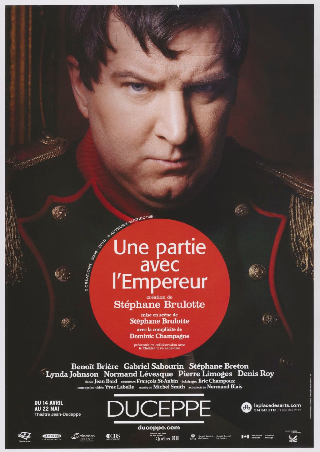 Une partie avec l'empereur, création de Stéphane Brulotte, mise en scène de Stéphane Brulotte avec la complicité de Dominic Champagne ... Benoît Brière, Gabriel Sabourin, Stéphane Breton ...