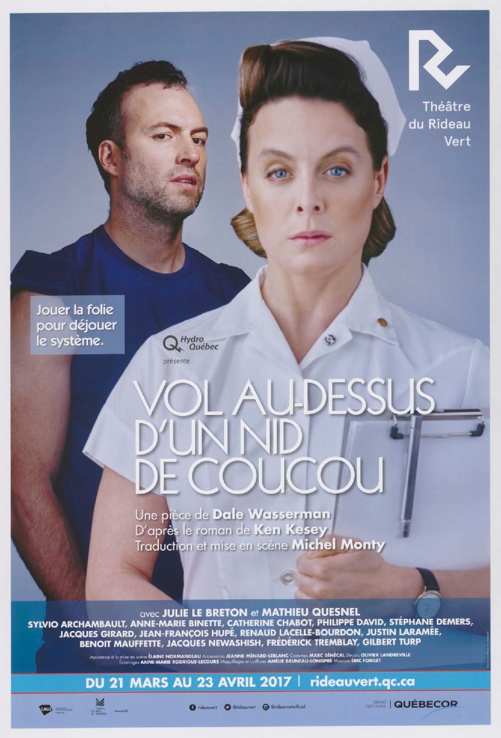 Hydro Québec présente Vol au-dessus d'un nid de coucou : jouer la folie pour déjouer le système : une pièce de Dale Wasserman, d'après le roman de Ken Kesey, traduction et mise en scène Michel Monty /
