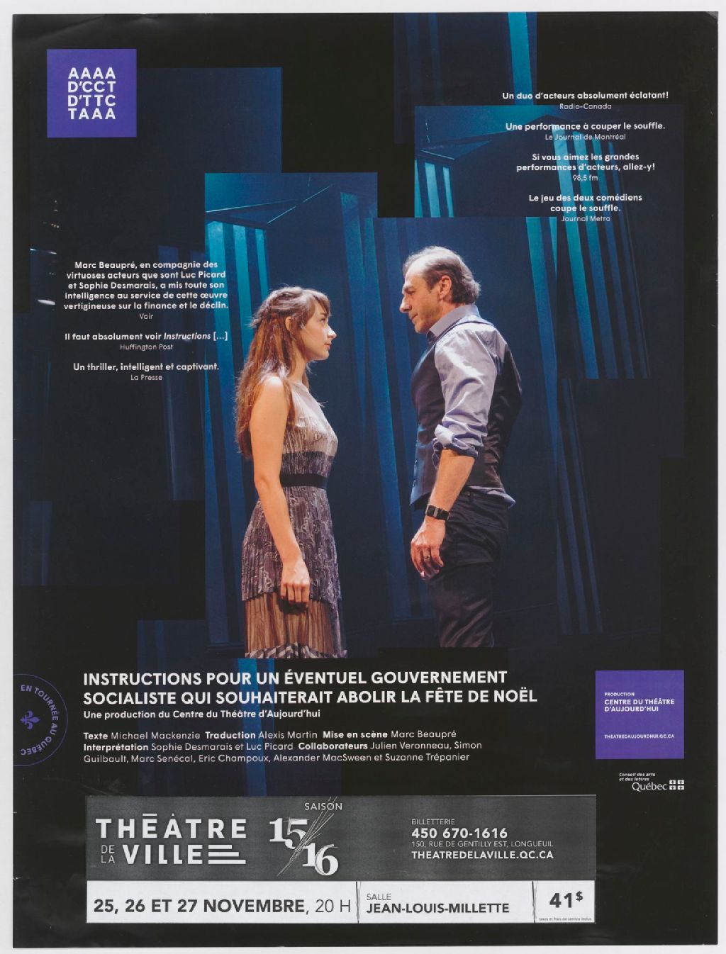 Instructions pour un éventuel gouvernement socialiste qui voudrait abolir la fête de Noël : une production du Centre du Théâtre d'Aujourd'hui : en tournée au Québec