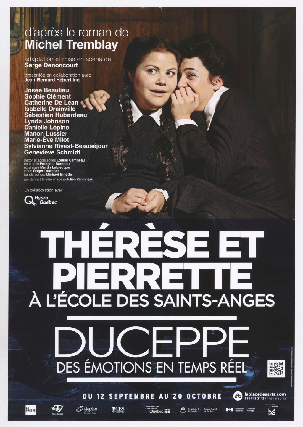 Thérèse et Pierrette à l'école des Saints-Anges : d'après le roman de Michel Tremblay, adaptation et mise en scène de Serge Denoncourt ... : Josée Beaulieu, Sophie Clément, Catherine De Léan ... /