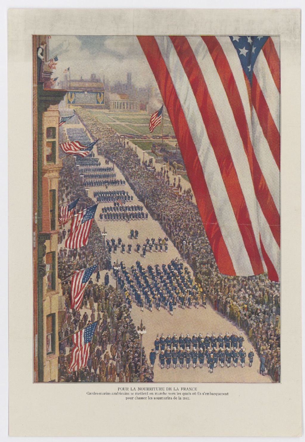 Pour la nourriture de la France, gardes-marins américains se mettent en marche vers les quais où ils s'embarqueront pour chasser les sousmarins [sic] de la mer