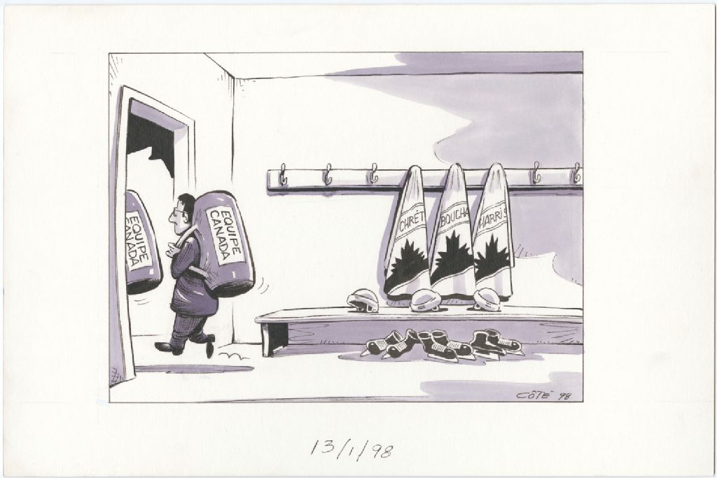 Équipe Canada - Chrétien, Bouchard, Harris, 13 janvier 1998, Archives nationales à Québec, Fonds André-Philippe Côté, (03Q,P687,S1,P98-01-13), André-Philippe Côté.