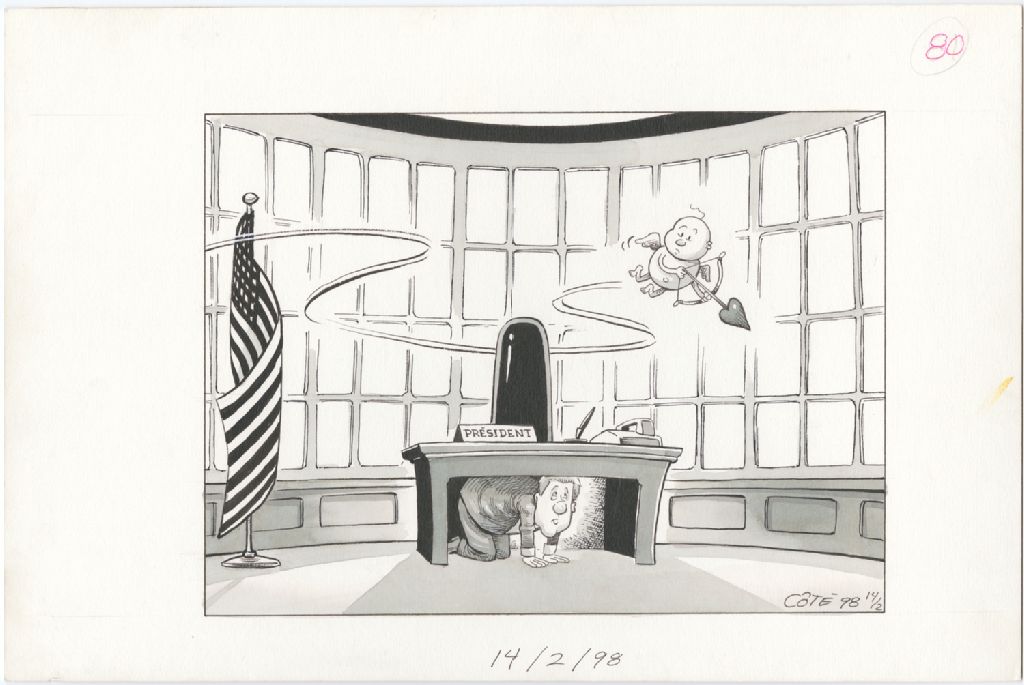 [Bill Clinton et Cupidon], 14 février 1998, Archives nationales à Québec, Fonds André-Philippe Côté, (03Q,P687,S1,P98-02-14-1), André-Philippe Côté.