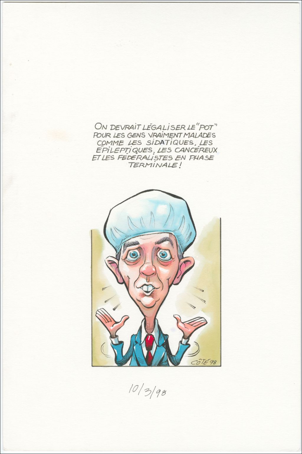 [Jean Duceppe] : « On devrait légaliser le "pot" pour les gens vraiment malades comme les sidatiques, les épileptiques, les cancéreux et les fédéralistes en phase terminale ! »