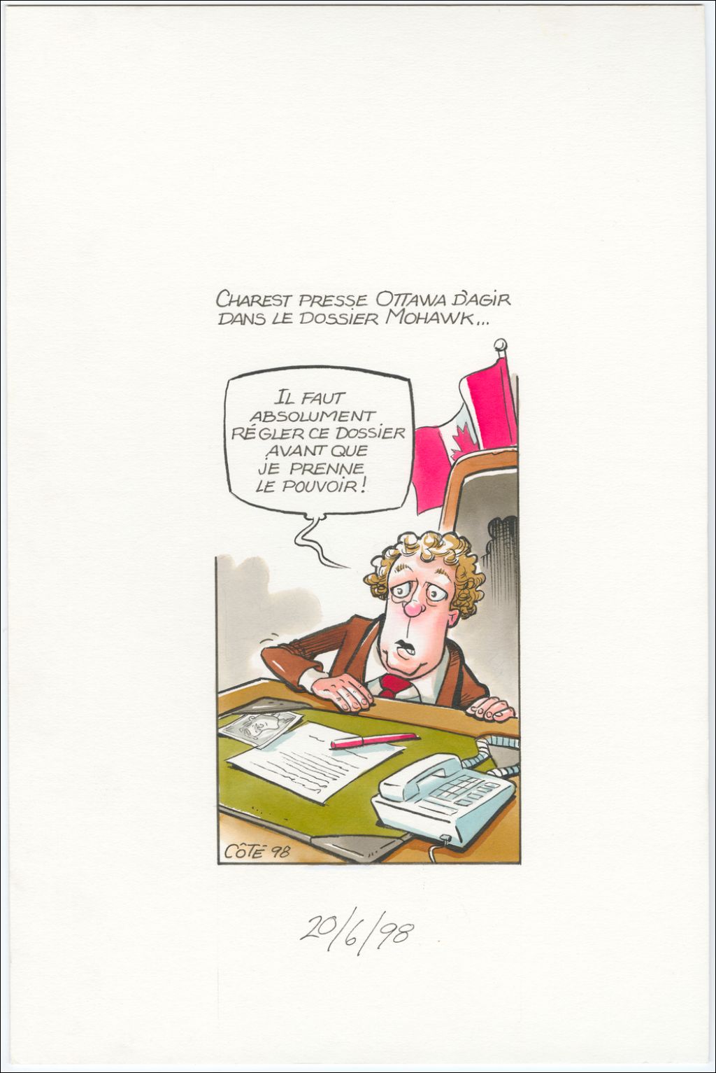 Charest presse Ottawa d'agir dans le dossier Mohawk… [Jean Charest] : « Il faut absolument régler ce dossier avant que je prenne le pouvoir ! »