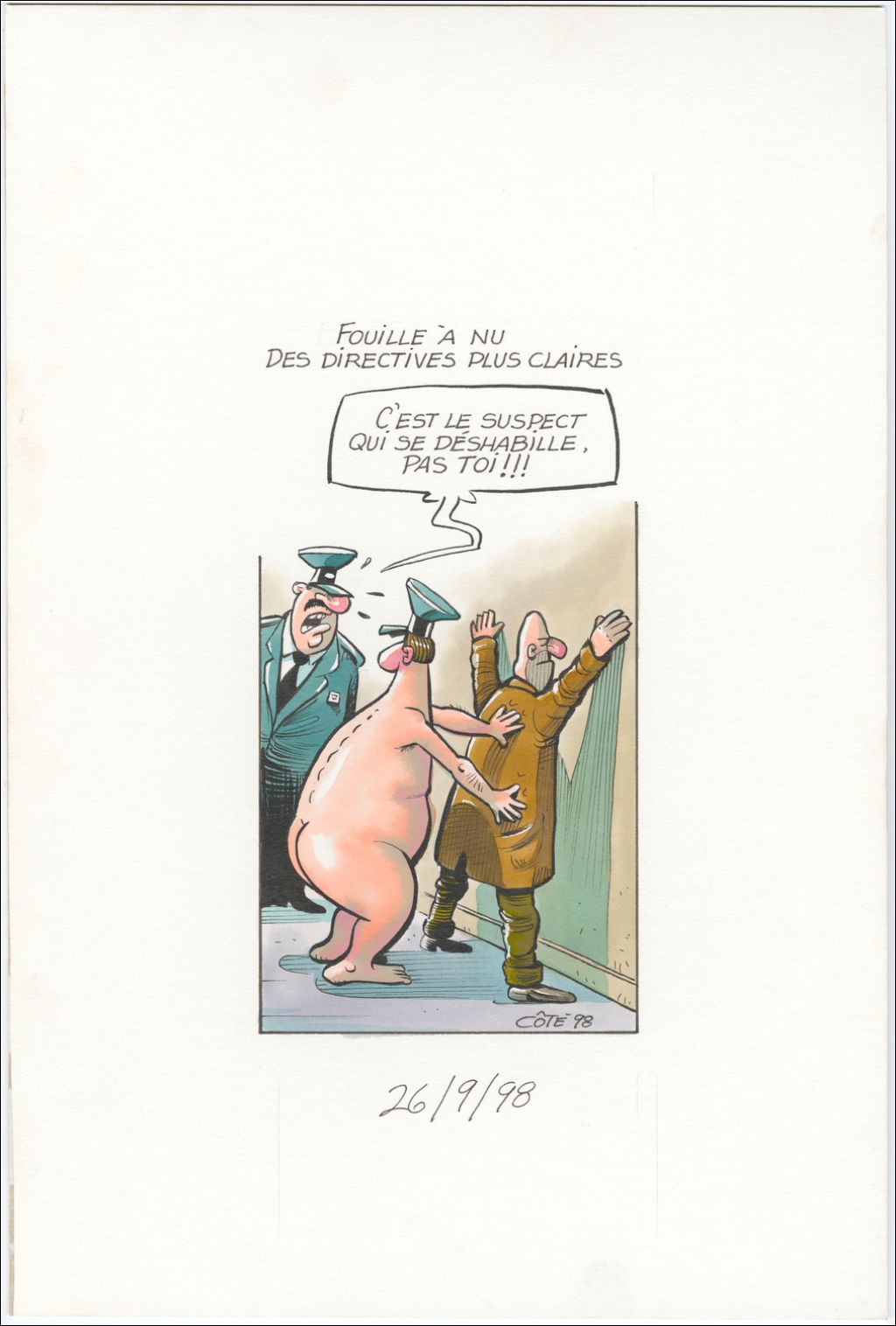 Fouille à nu des directives plus claires. [Policier] : "C'est le suspect qui se déshabille, pas toi!!!"