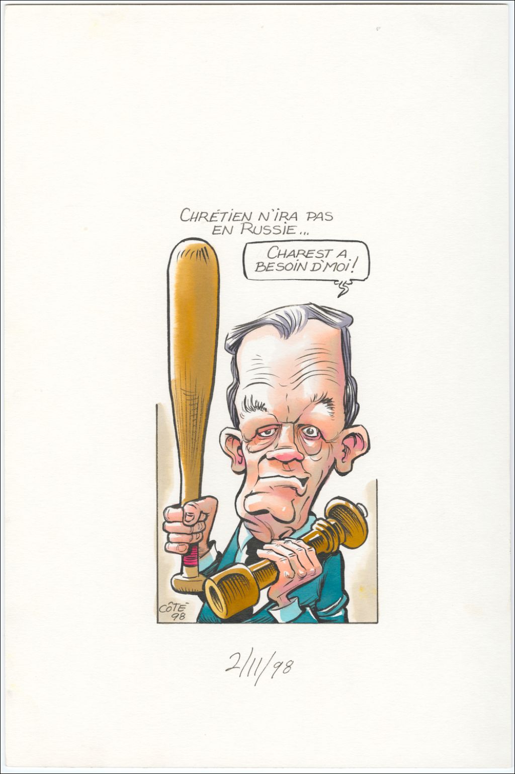 Chrétien n'ira pas en Russie… [Jean Chrétien] : « Charest a besoin d'moi ! », 2 novembre 1998, Archives nationales à Québec, Fonds André-Philippe Côté, (03Q,P687,S1,P98-11-02-1), André-Philippe Côté.