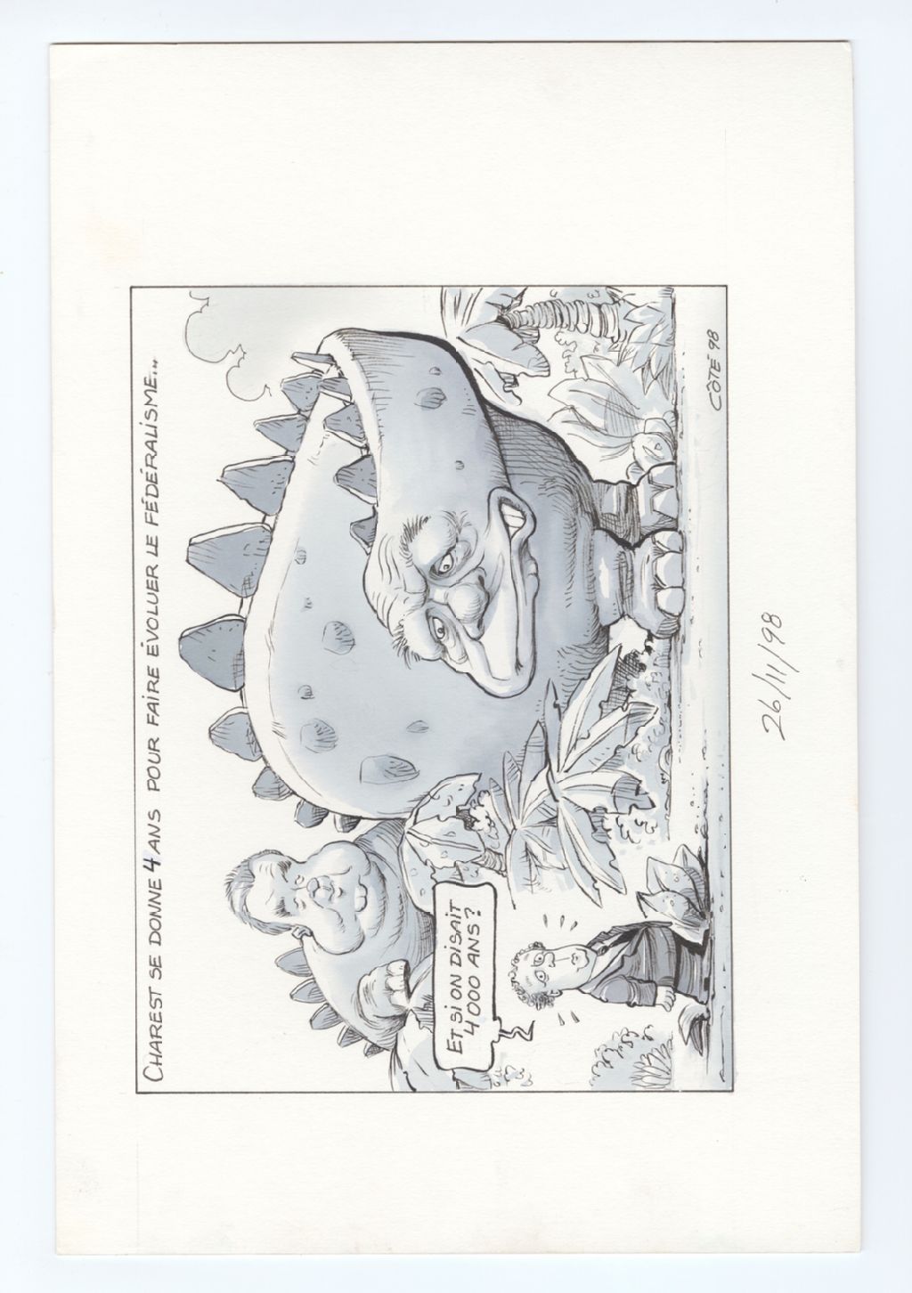 Charest se donne 4 ans pour faire évoluer le fédéralisme… [Jean Charest] : « Et si on disait 4000 ans » [Des dinosaures sont à l'arrière de Jean Charest]