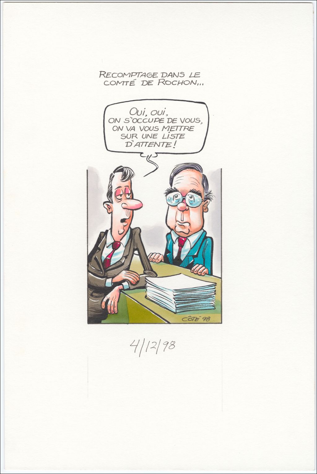 Recomptage dans le comté de Rochon... [Médecin] : « Oui, oui, on s'occupe de vous, on va vous mettre sur une liste d'attente ! »