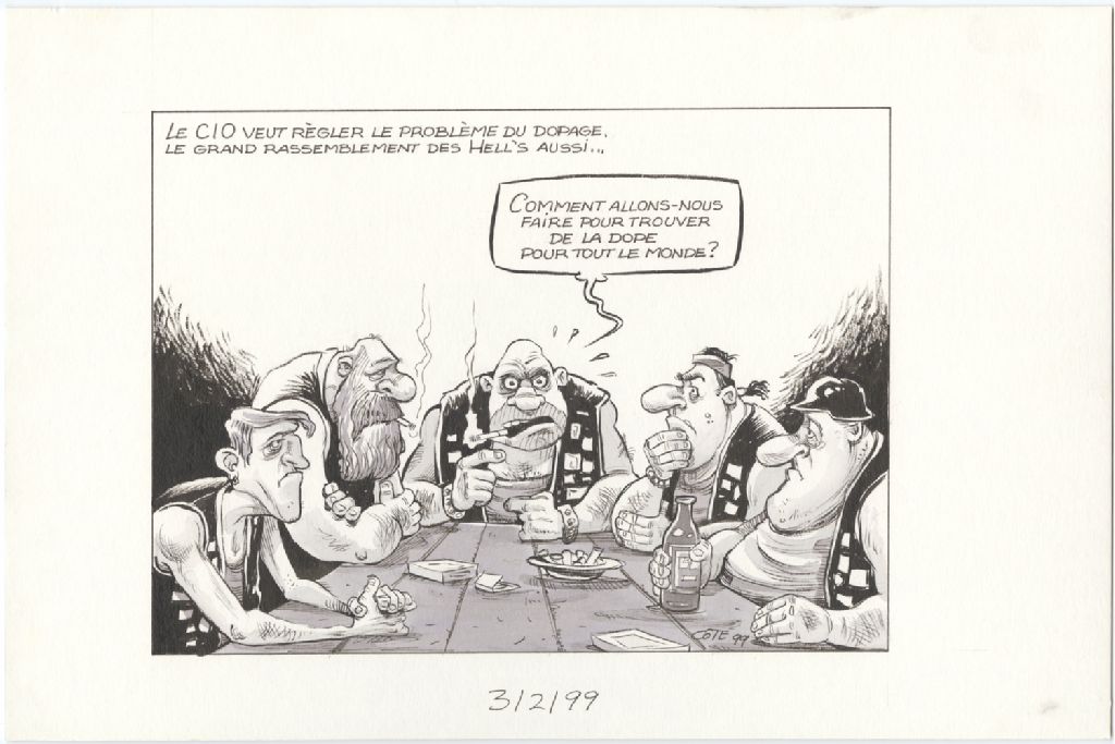 Le CIO veut régler le problème du dopage. Le grand rassemblement des Hell's aussi… [Hell's] : « Comment allons-nous faire pour trouver de la dope pour tout le monde ? »