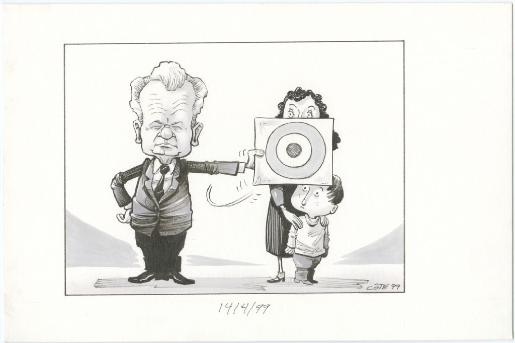 [Slobodan Milosevic place une cible devant le visage d'une mère et son enfant]