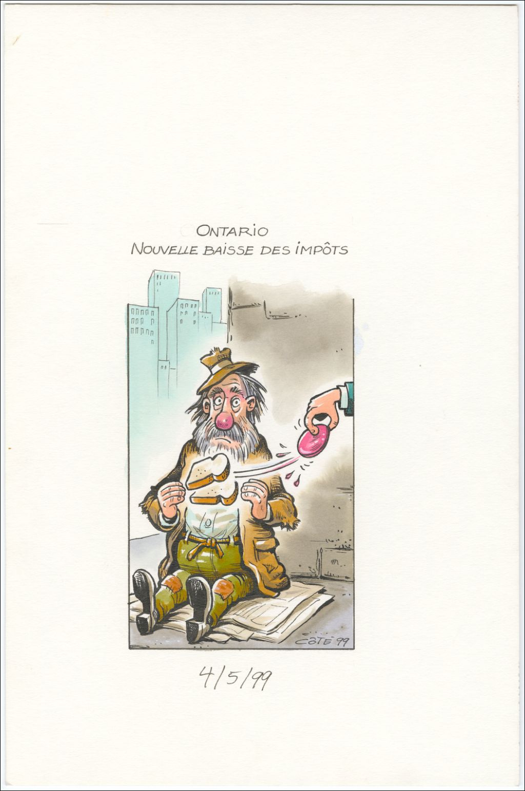 Ontario. Nouvelle baisse des impôts, 4 mai 1999, Archives nationales à Québec, Fonds André-Philippe Côté, (03Q,P687,S1,P99-05-04), André-Philippe Côté.