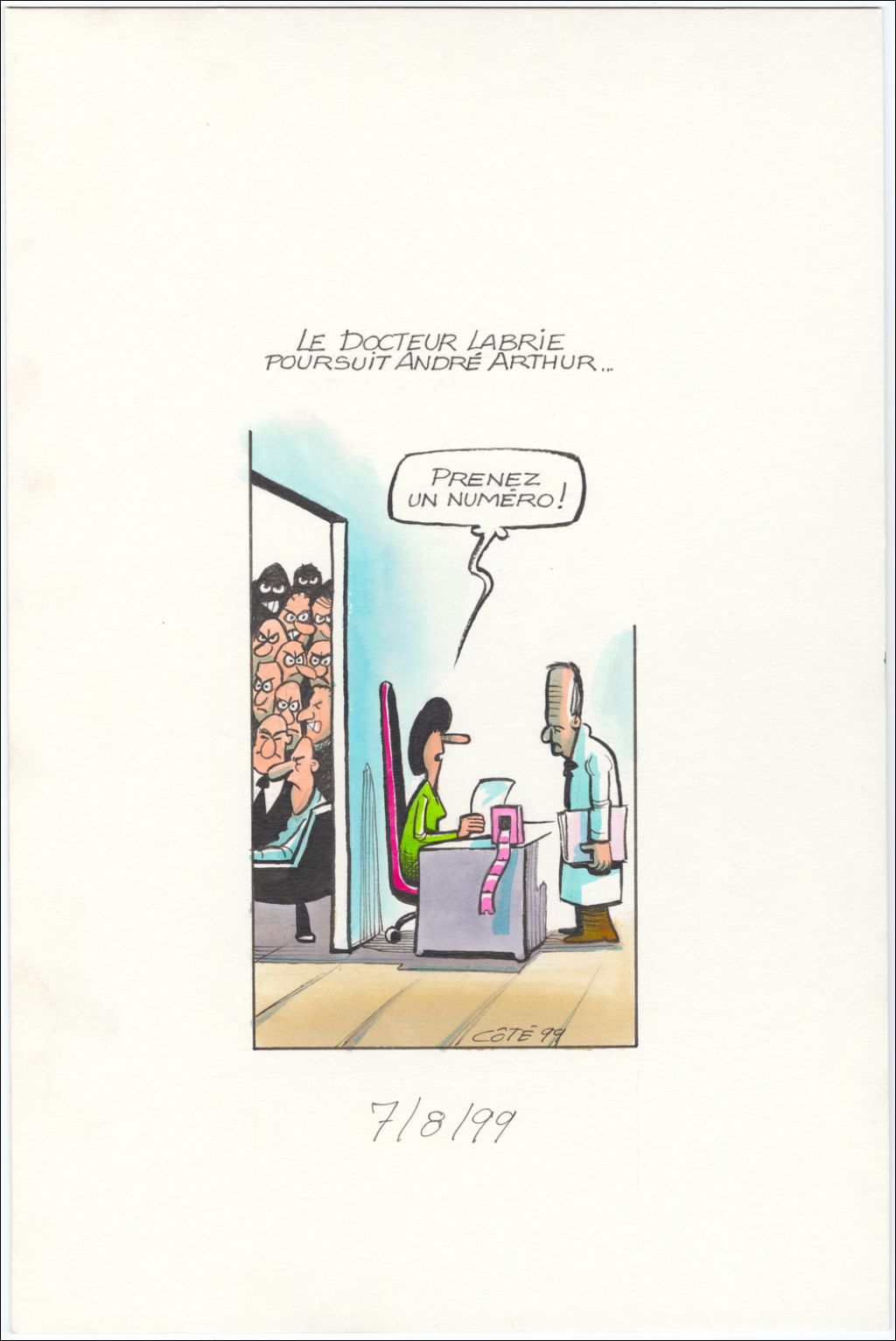 Le docteur Labrie poursuit André Arthur… [Commis à l'accueil] : « Prenez un numéro ! »