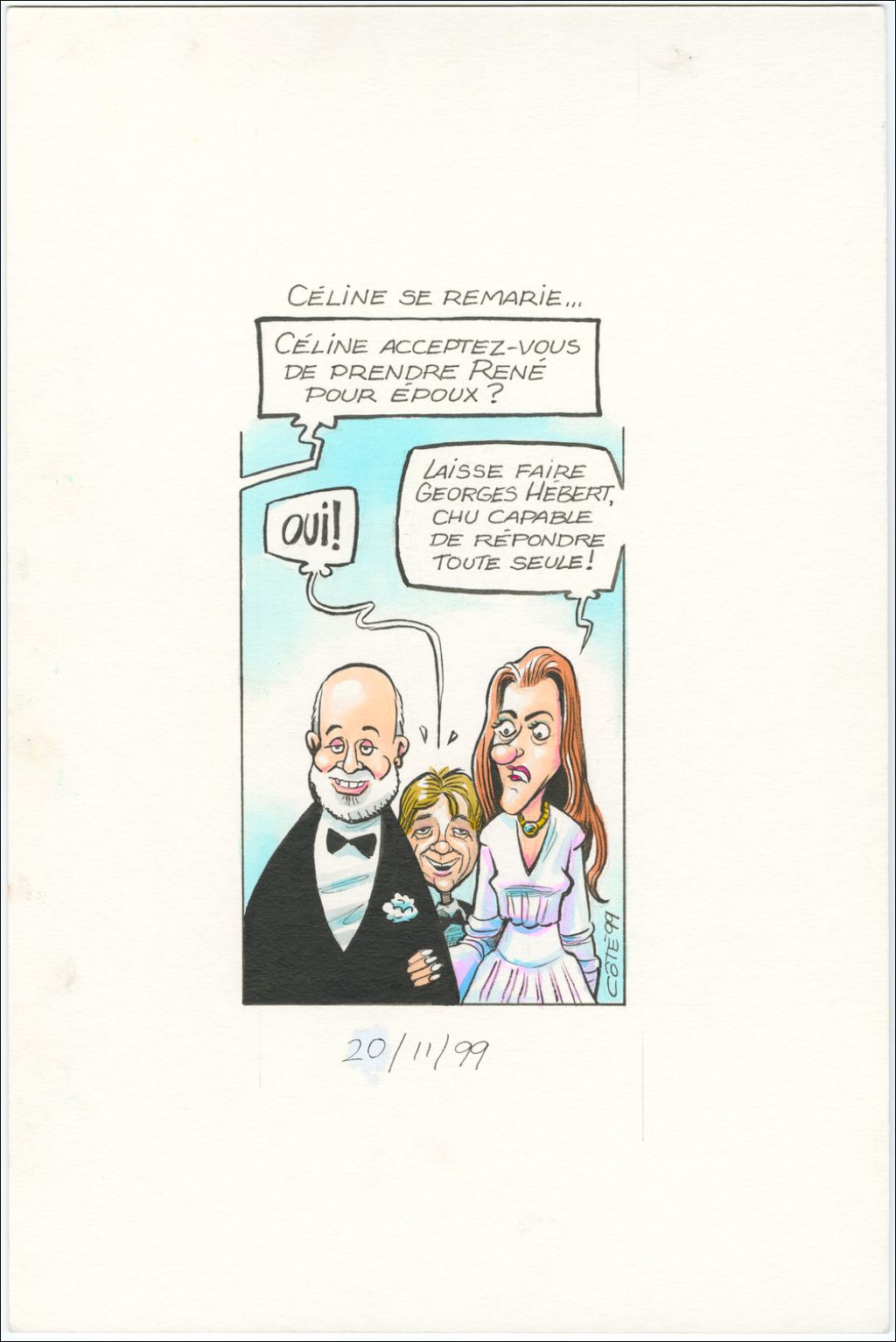 Céline se remarie… [Curé] : « Céline acceptez-vous de prendre René pour époux ? » [George-Hébert Germain] : « Oui ! » [Céline Dion] : « Laisse faire Georges Hébert, chu capable de répondre toute seule ! »