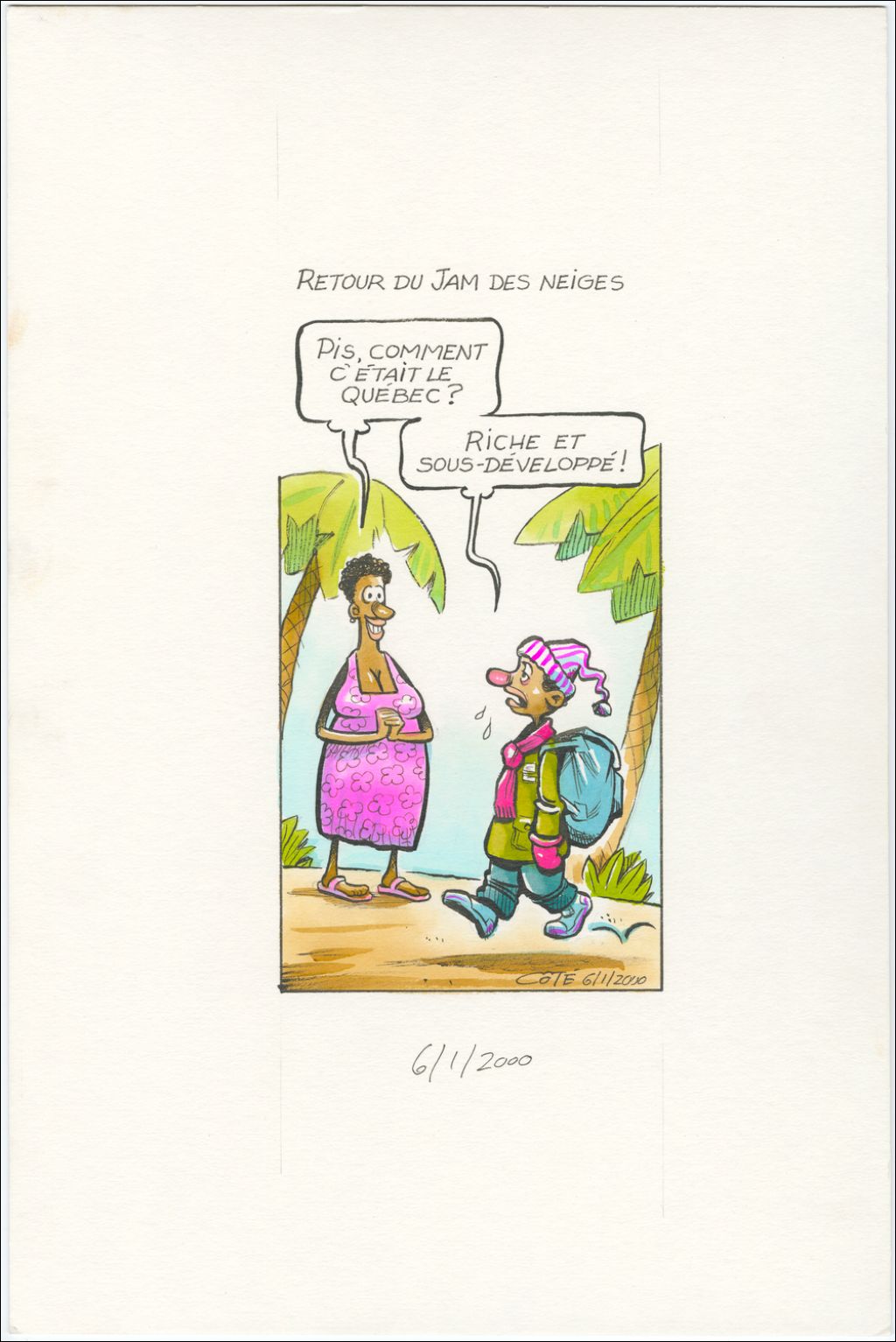 Retour du Jam des neiges [Africaine] : « Pis, comment c'était le Québec ? » [Jeune garçon africain] : « Riche et sous-développé ! »