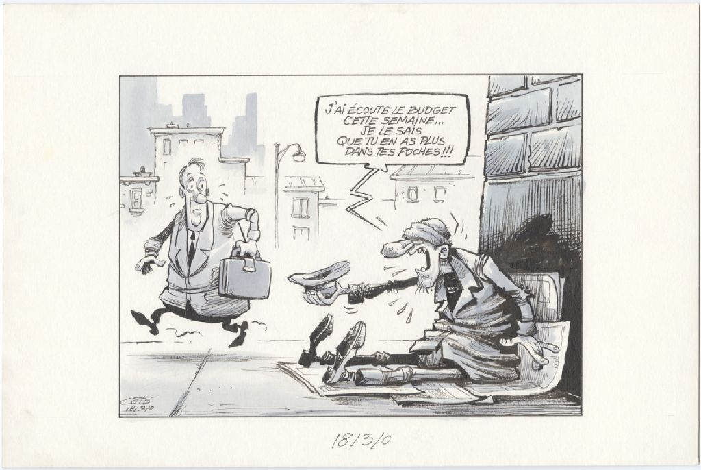[Mendiant] : "J'ai écouté le budget cette semaine… Je le savais que tu en as plus dans tes poches!!!"