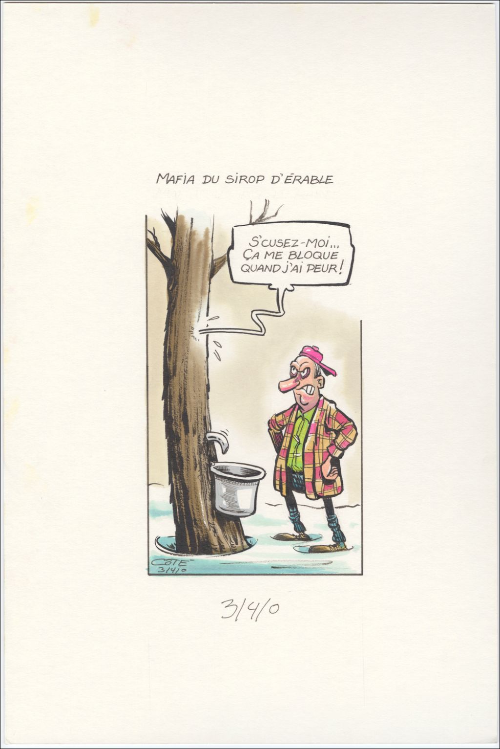 Mafia du sirop d'érable. [Érable] : "S'cusez-moi… Ça me bloque quand j'ai peur!"