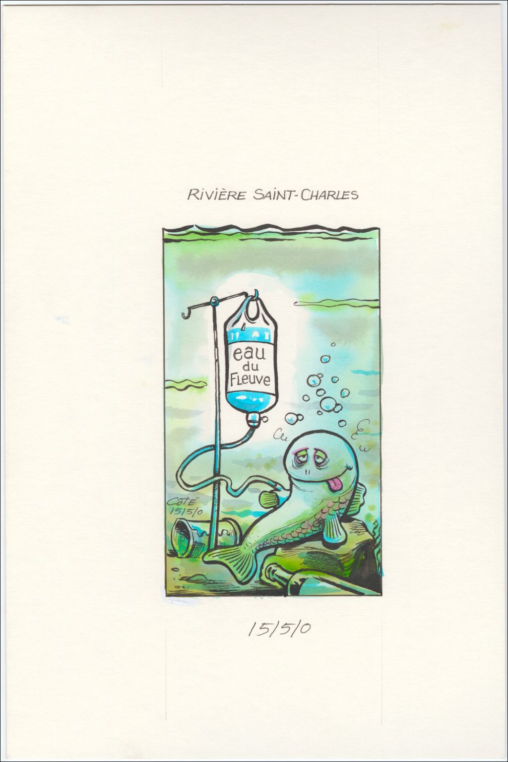 On peut voir un poisson avec un soluté de l'eau du fleuve St-Laurent