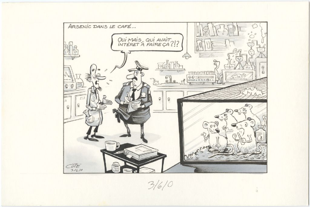 Arsenic dans le café… [Chercheur] : "Oui, mais, qui avait intérêt à faire ça?!?", 3 juin 2000, Archives nationales à Québec, Fonds André-Philippe Côté, (03Q,P687,S1,P2000-06-03-1), André-Philippe Côté.