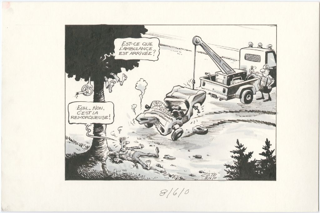 "Est-ce que l'ambulance est arrivée?" "Euh… Non, c'est la remorqueuse!"